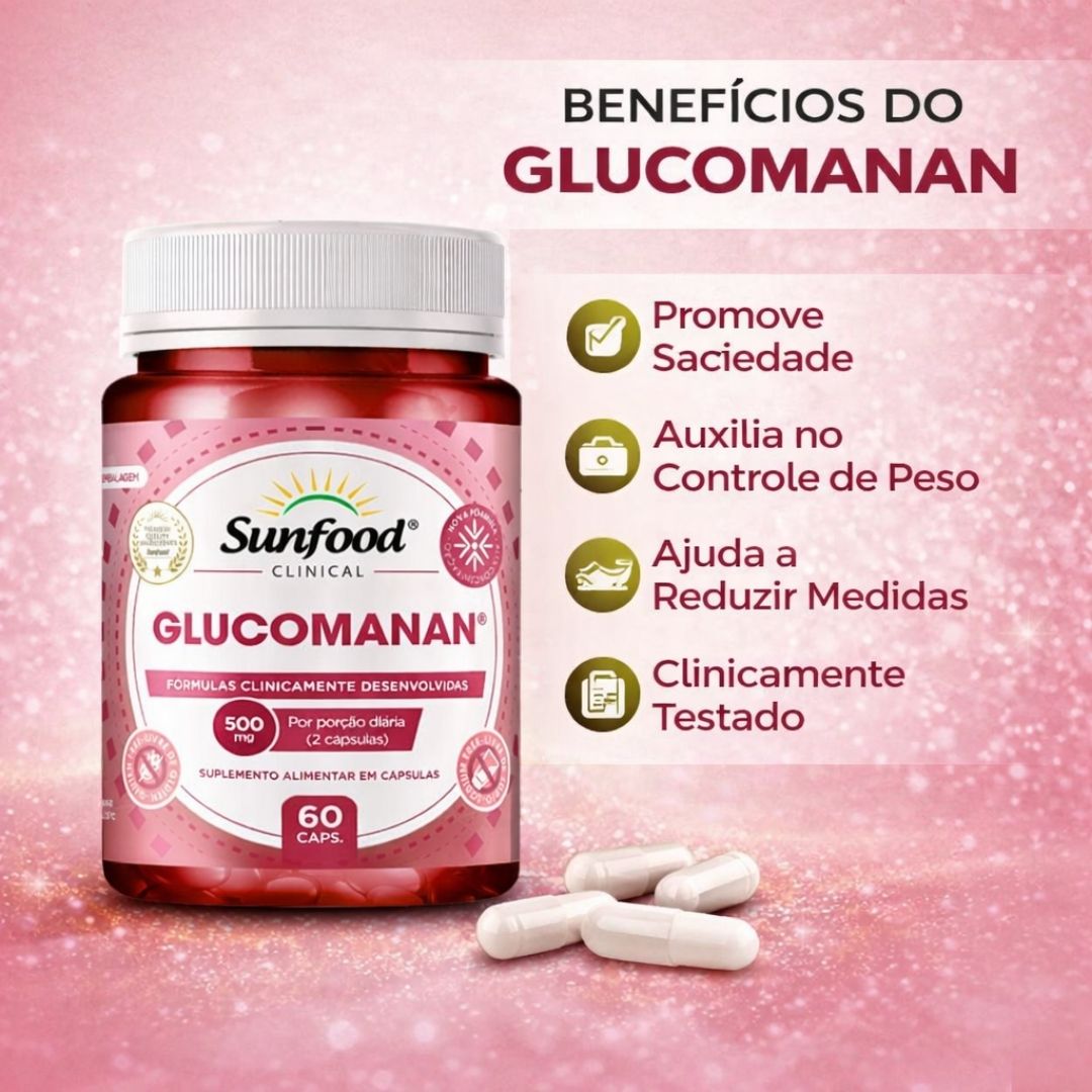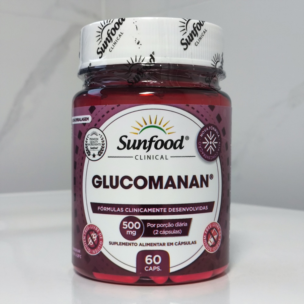 O Glucomanan Sunfood Clinical é um suplemento alimentar em cápsulas formulado com fibras vegetais solúveis de alta absorção. Conhecido como uma poderosa fibra dietética natural, o Glucomanan é um aliado estratégico para quem busca suporte em dietas de controle de peso e melhora da saúde digestiva.