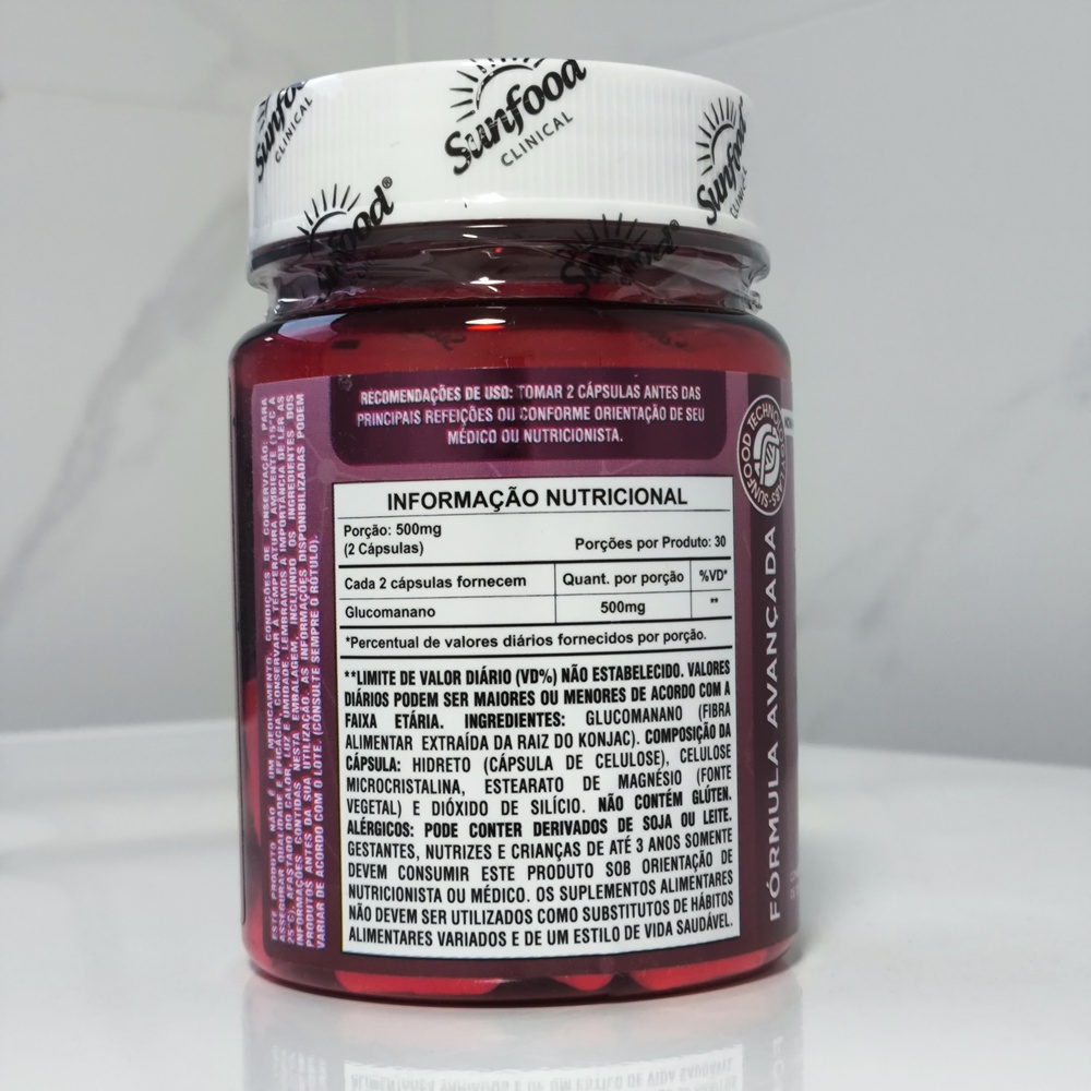 Dica de Uso: Para que o Glucomanan exerça seu efeito de saciedade, é fundamental consumi-lo com pelo menos um copo cheio de água (250ml).