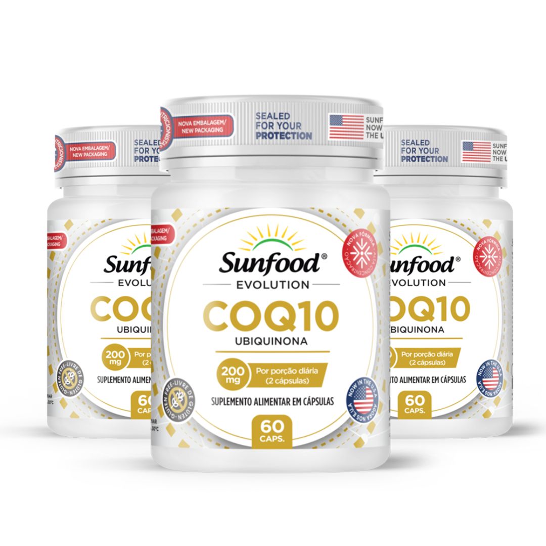 KIT 3 UNID – CoQ10 Ubiquinona 200 mg Sunfood Evolution – 60 Cápsulas