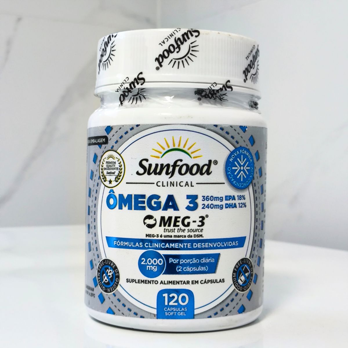 O Ômega 3X Sunfood Clinical combina EPA e DHA em uma formulação prática, pensada para quem valoriza organização, rotina e escolhas equilibradas no dia a dia. Produzido com óleo de peixe purificado MEG-3®, conhecido por seu rigor de qualidade, o produto entrega 2000mg por porção e vem em embalagem com 120 softgels, oferecendo ótimo rendimento.