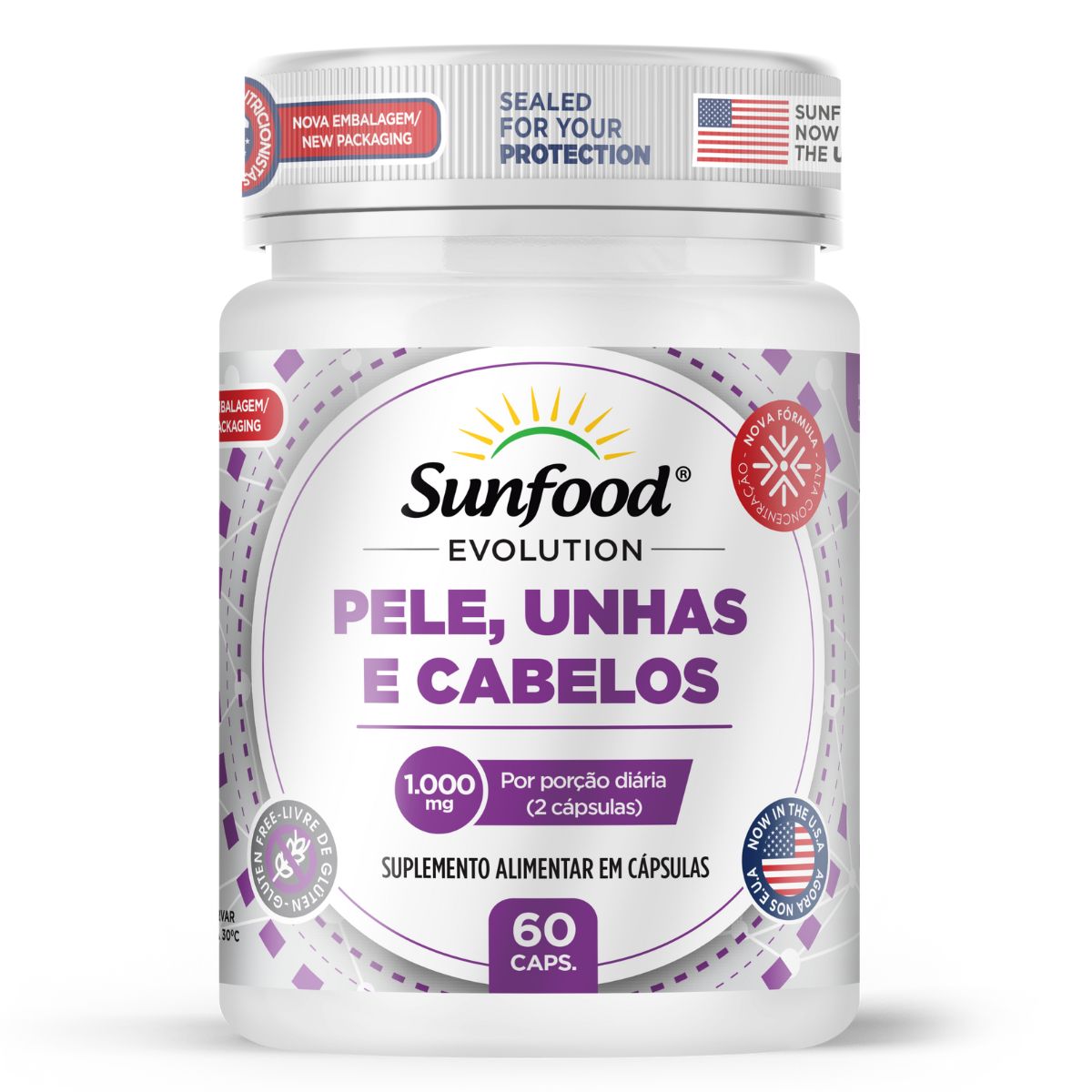 Seja o primeiro a avaliar “Pele Unhas e Cabelos 1000mg 60 Cápsulas Sunfood Evolution”